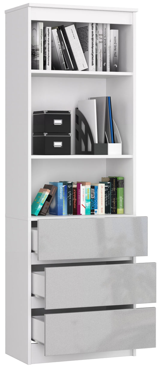 REGAŁ BIUROWY R 60 cm CLP 3 SZUFLADY 2 PÓŁKI BIAŁY / METALIK POŁYSK