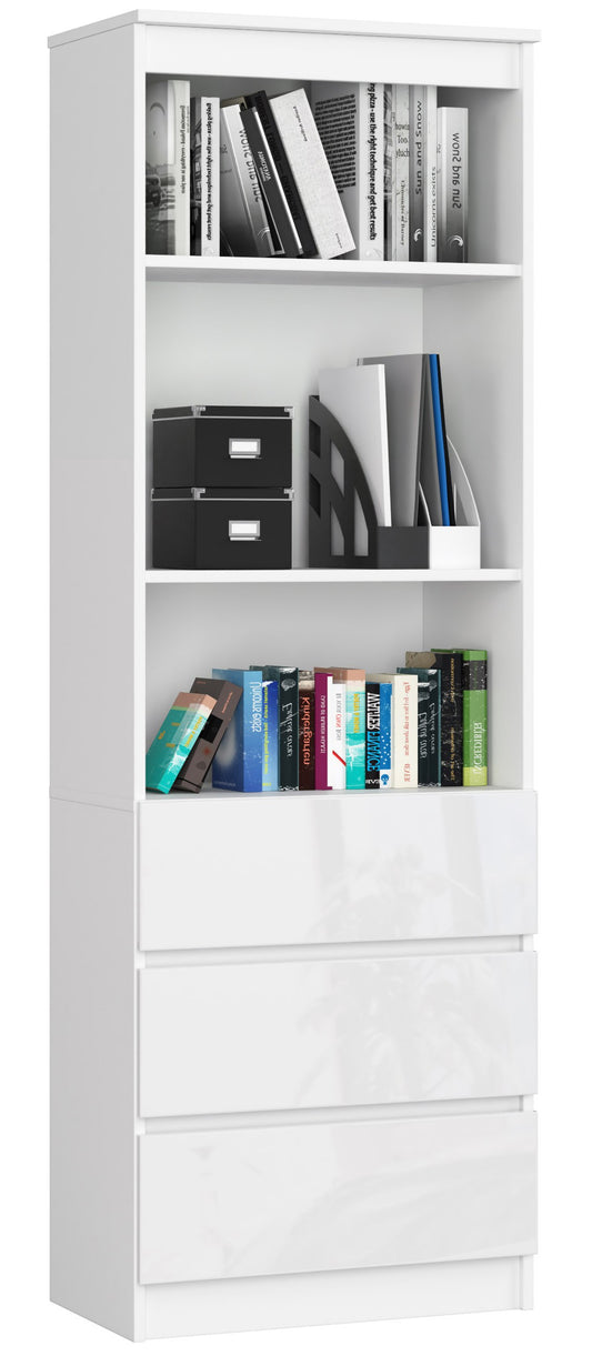 REGAŁ BIUROWY R 60 cm CLP 3 SZUFLADY 2 PÓŁKI BIAŁY / BIAŁY POŁYSK