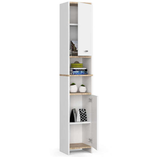Słupek regał łazienkowy FIN nad pralkę - biały-cappuccino połysk - 2 drzwi