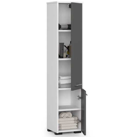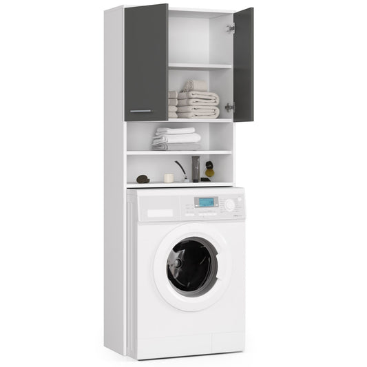 Słupek regał łazienkowy FIN nad pralkę - biały-grafit szary - 2 drzwi