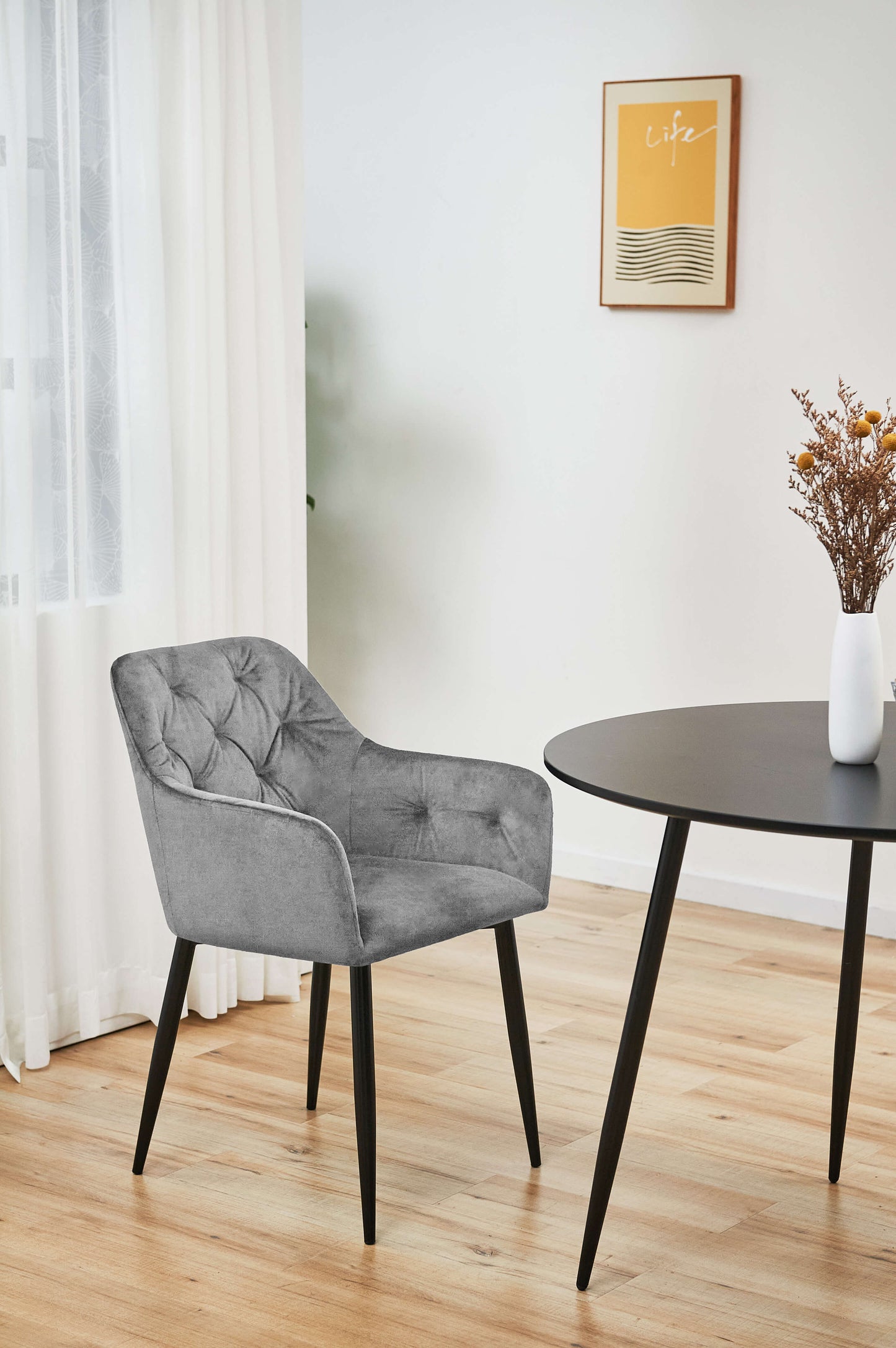Nowoczesne wzornictwo i panujące trendy pokazują jak wspaniałym i praktycznym materiałem jest welur. Taką serię naszych krzeseł chcielibyśmy zaproponować Państwu jako dodatek do nowoczesnych i stylowych wnętrz. Krzesło typu SJ.030 posiada nogi metalowe w kolorze czarnym. Takie nogi pasują zarówno do klasycznego wystroju jak i do nowoczesnych aranżacji. Tapicerka welurowa okala siedzisko i oparcie dzięki czemu fotel jest miły w dotyku i nie powoduje dyskomfortu w letnie dni. Pikowane zastosowane podczas tapicerowania dodaje jeszcze bardziej eleganckiego wyglądu i ponadczasowej stylistyki.
