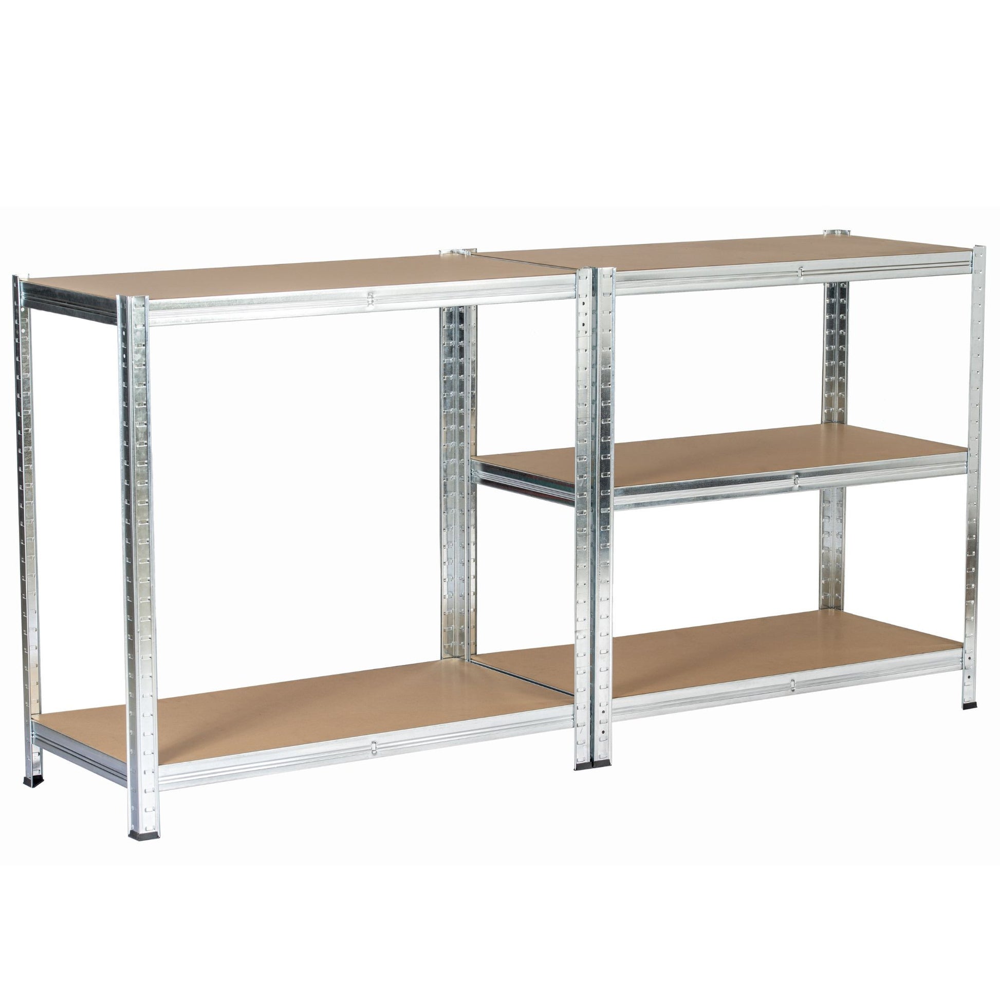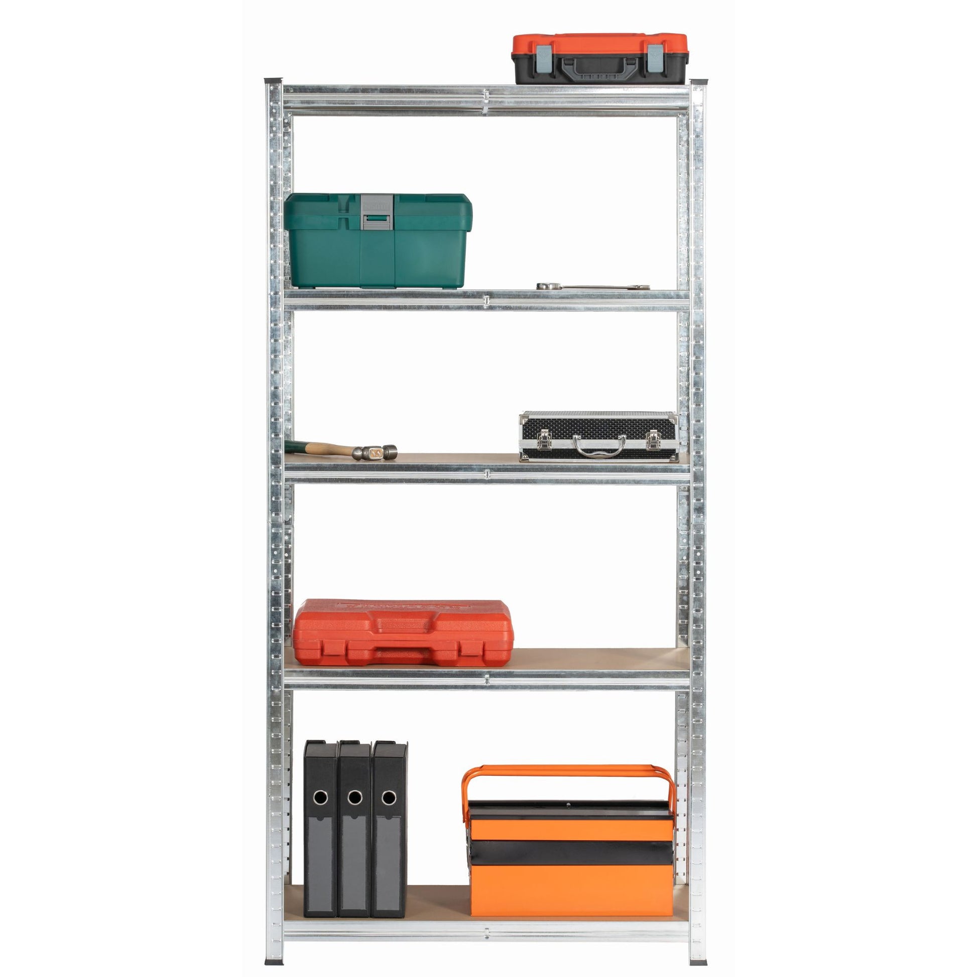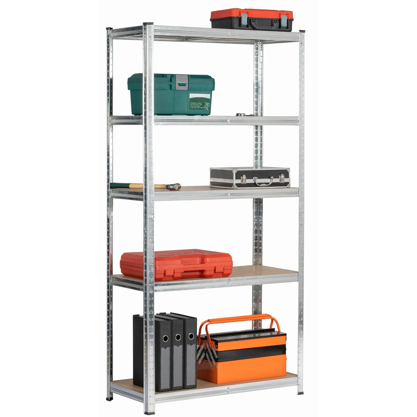 Zestaw regałów metalowy idealnie pasujący do przechowywania. Nadaje się do garażu, warsztatu, komórki lokatorskiej, jak również do pomieszczeń gospodarczych. Regał w kolorze srebrny o szerokości 80 cm oraz 180 wysokości. Pólki wykonane z wytrzymałej płyty MDF. Nośność na półkę wynosi 175kg.