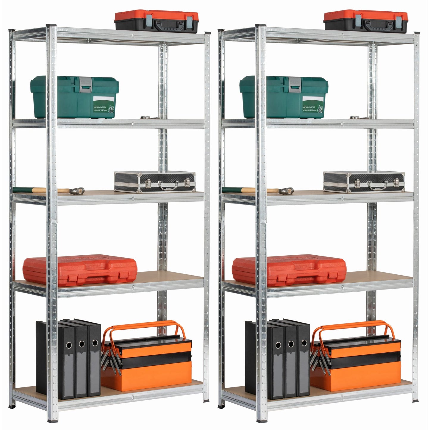 Zestaw regałów metalowy idealnie pasujący do przechowywania. Nadaje się do garażu, warsztatu, komórki lokatorskiej, jak również do pomieszczeń gospodarczych. Regał w kolorze srebrny o szerokości 90 cm oraz 180 wysokości. Pólki wykonane z wytrzymałej płyty MDF. Nośność na półkę wynosi 175kg.