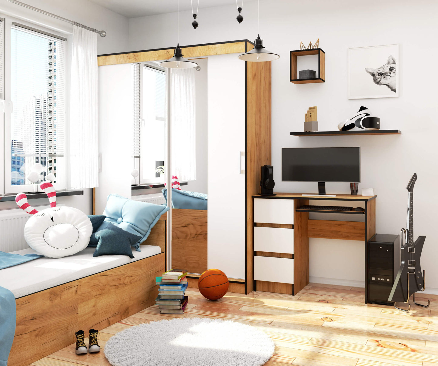 - funkcjonalność - biurko ułatwi stworzenie odpowiedniego miejsca do nauki i pracy, pozwalając mieć przy sobie w szufladzie ważne przedmioty pod ręką,
