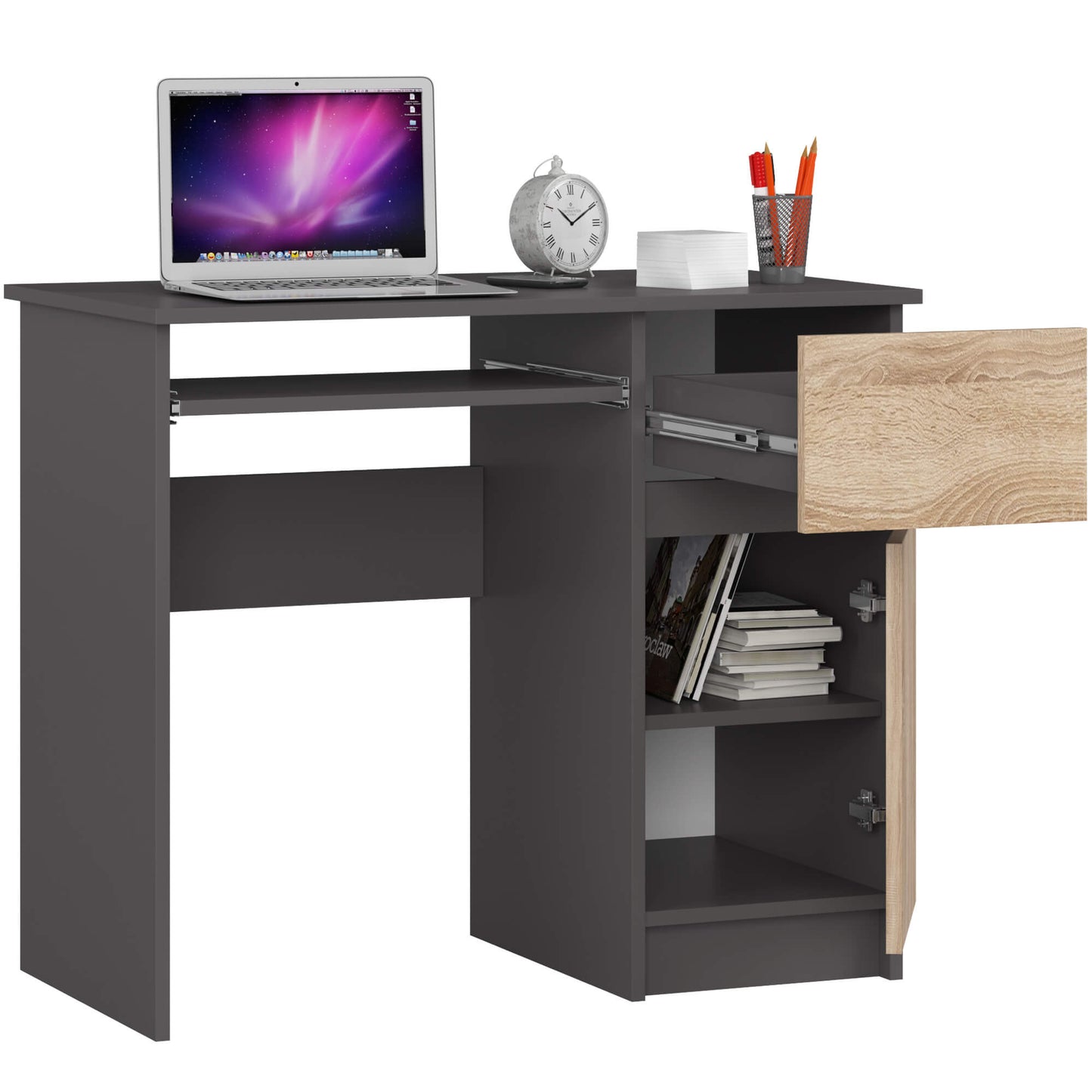 BIURKO KOMPUTEROWE PIKSEL PK SZARE / DĄB SONOMA - PRAWE