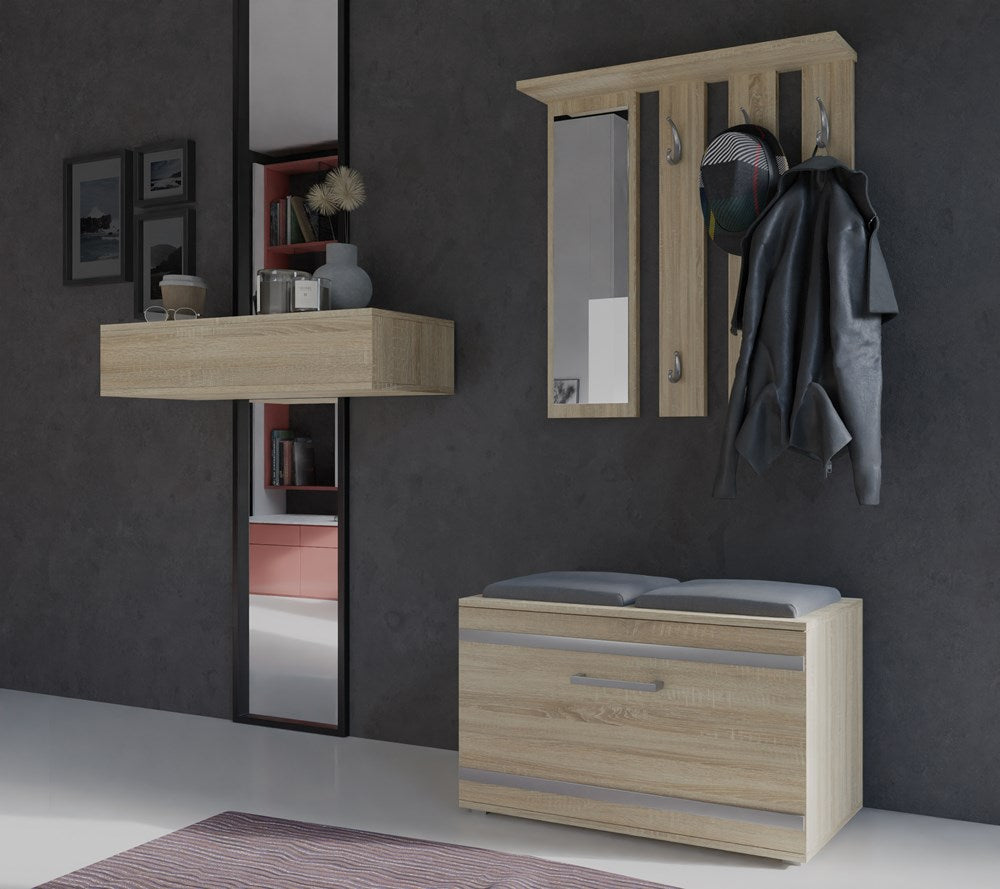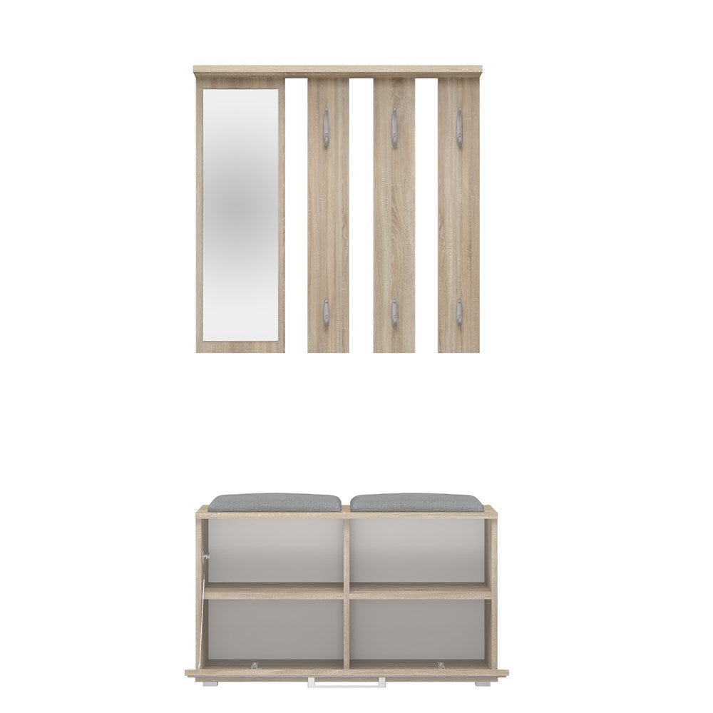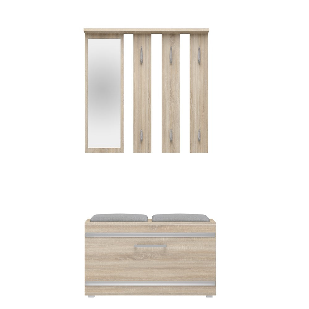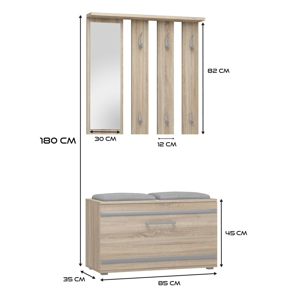 PRAKTYCZNY ZESTAW DO PRZEDPOKOJU WIESZAK Z LUSTREM + SZAFKA NA OBUWIE + SIEDZISKO