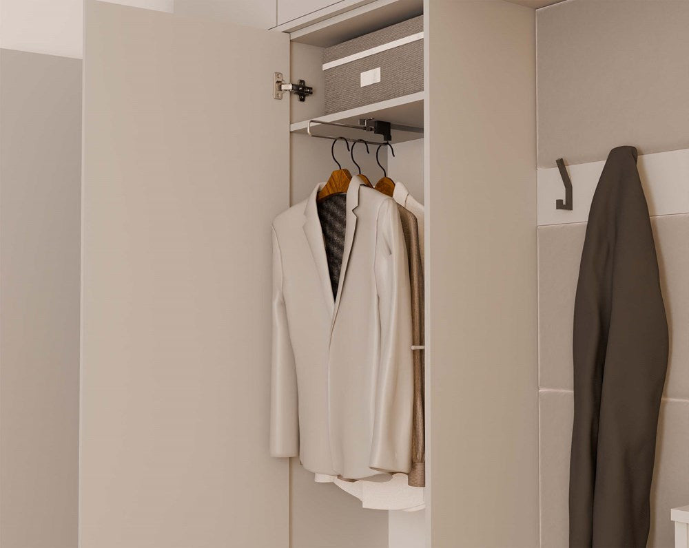 Seria mebli modułowych HAGA została zaprojektowana tak, by umożliwić dowolne zestawianie elementów - w łatwy sposób można rozbudować zestaw o dodatkowe moduły, np. szafę i stworzyć własny układ garderoby dostosowany do przestrzeni i potrzeb.