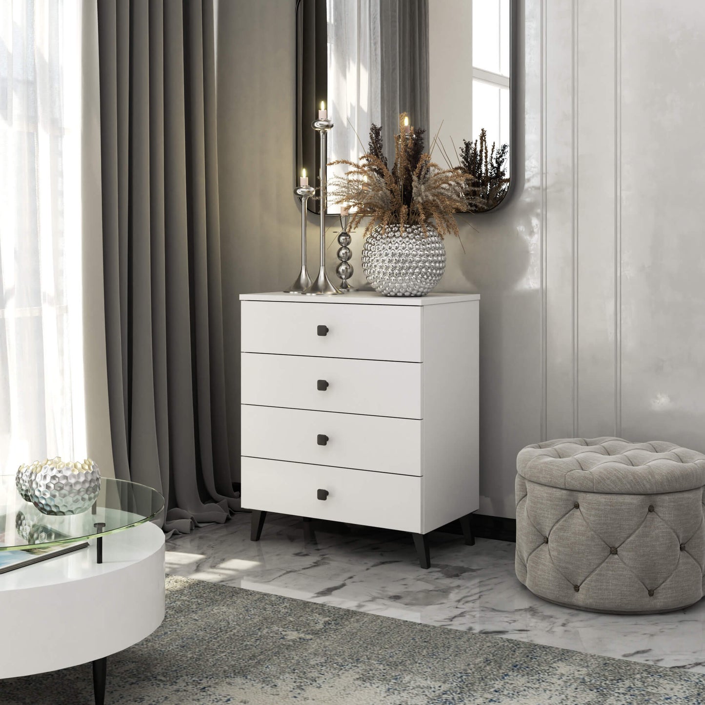KOMODA MOBI 4 SZUFLADY BIAŁY CZARNY