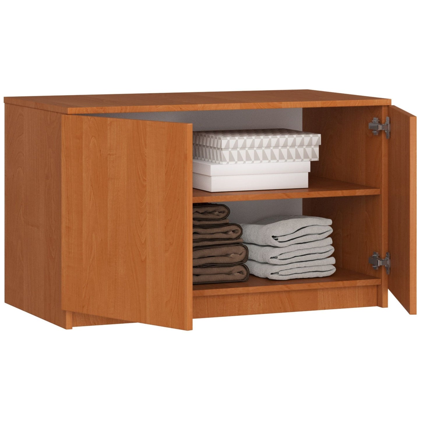 Praktyczna nadstawka na szafę S 90 centymetrów to wyrób wysokiej jakości, który został utrzymany w ponadczasowej kolorystyce, jaką jest olcha. Duży mebel przeznaczony do umieszczenia nad szafą jest w stanie zapewnić dodatkowe miejsce do przechowywania odzieży, obuwia, torebek, artykułów tekstylnych, a także wielu innych artykułów niezbędnych w danym pomieszczeniu. Produkt znajdzie zastosowanie w mieszkaniach - w przedpokoju, sypialni czy pokoju dziennym - jak również we wnętrzach o charakterze biurowym.