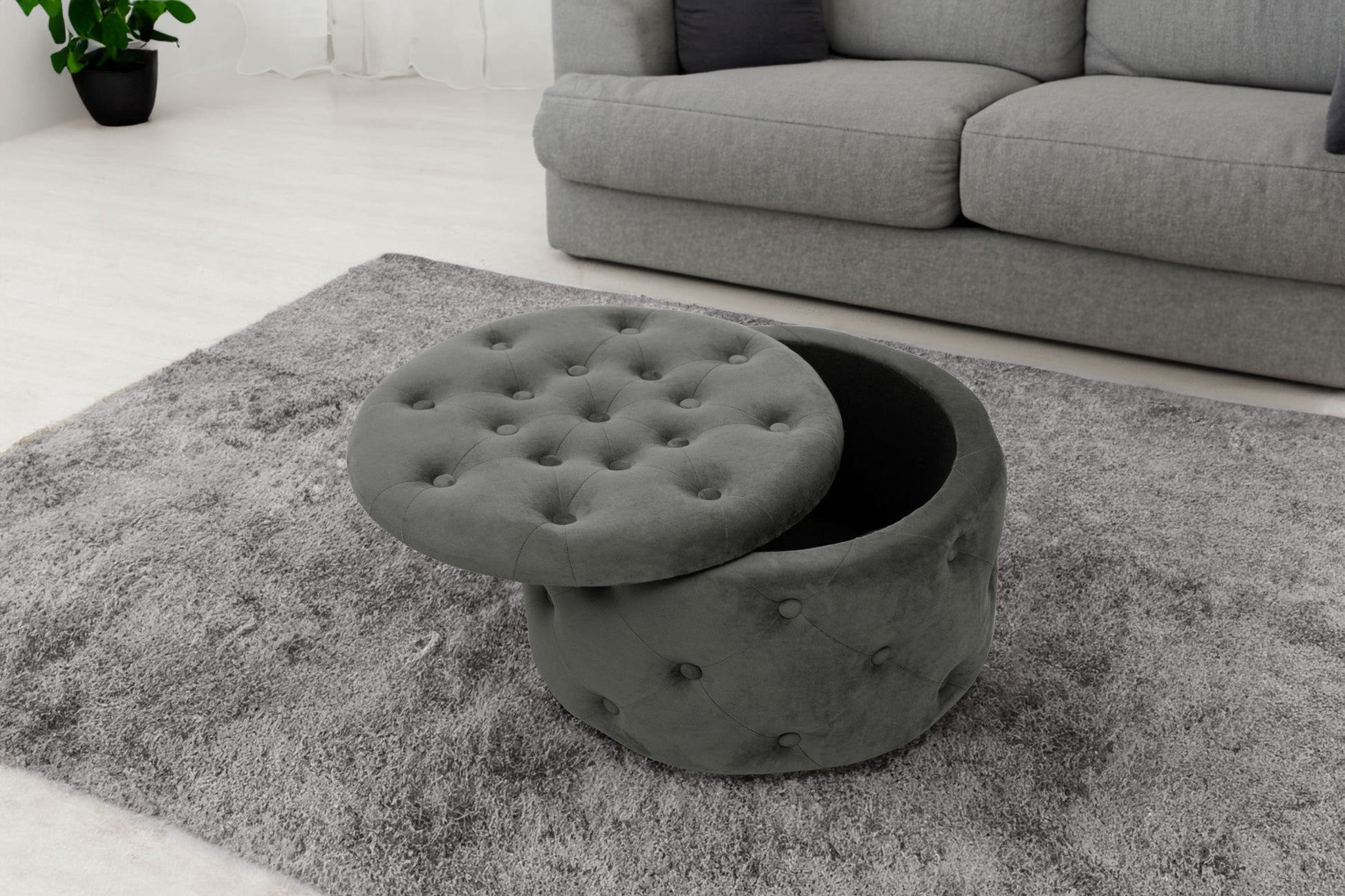 Pikowana pufa z pojemnikiem do salonu.