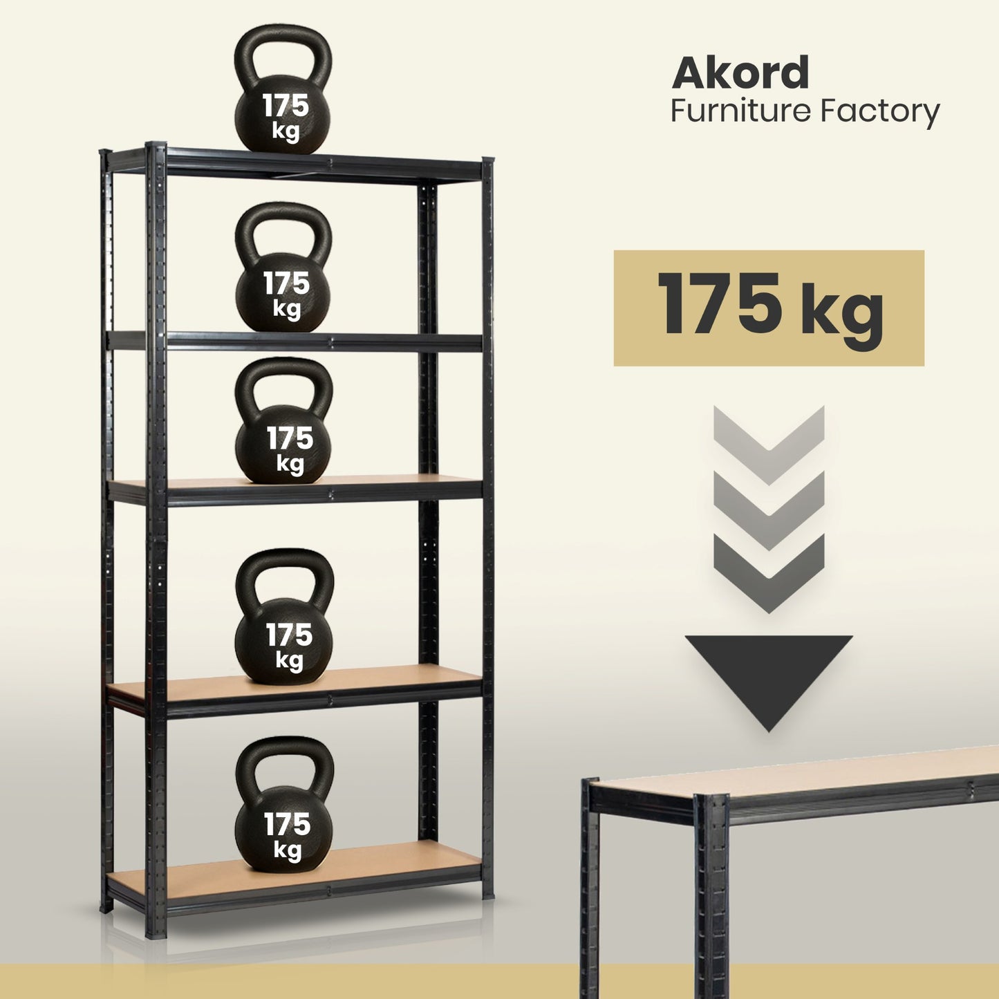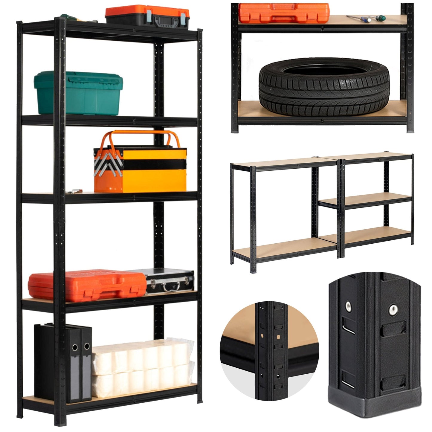 Regał metalowy idealnie pasujący do przechowywania. Nadaje się do garażu, warsztatu, komórki lokatorskiej, jak również do pomieszczeń gospodarczych. Regał w kolorze czarnym o szerokości 90 cm oraz 180 wysokości. Pólki wykonane z wytrzymałej płyty MDF. Nośność na półkę wynosi 175kg.