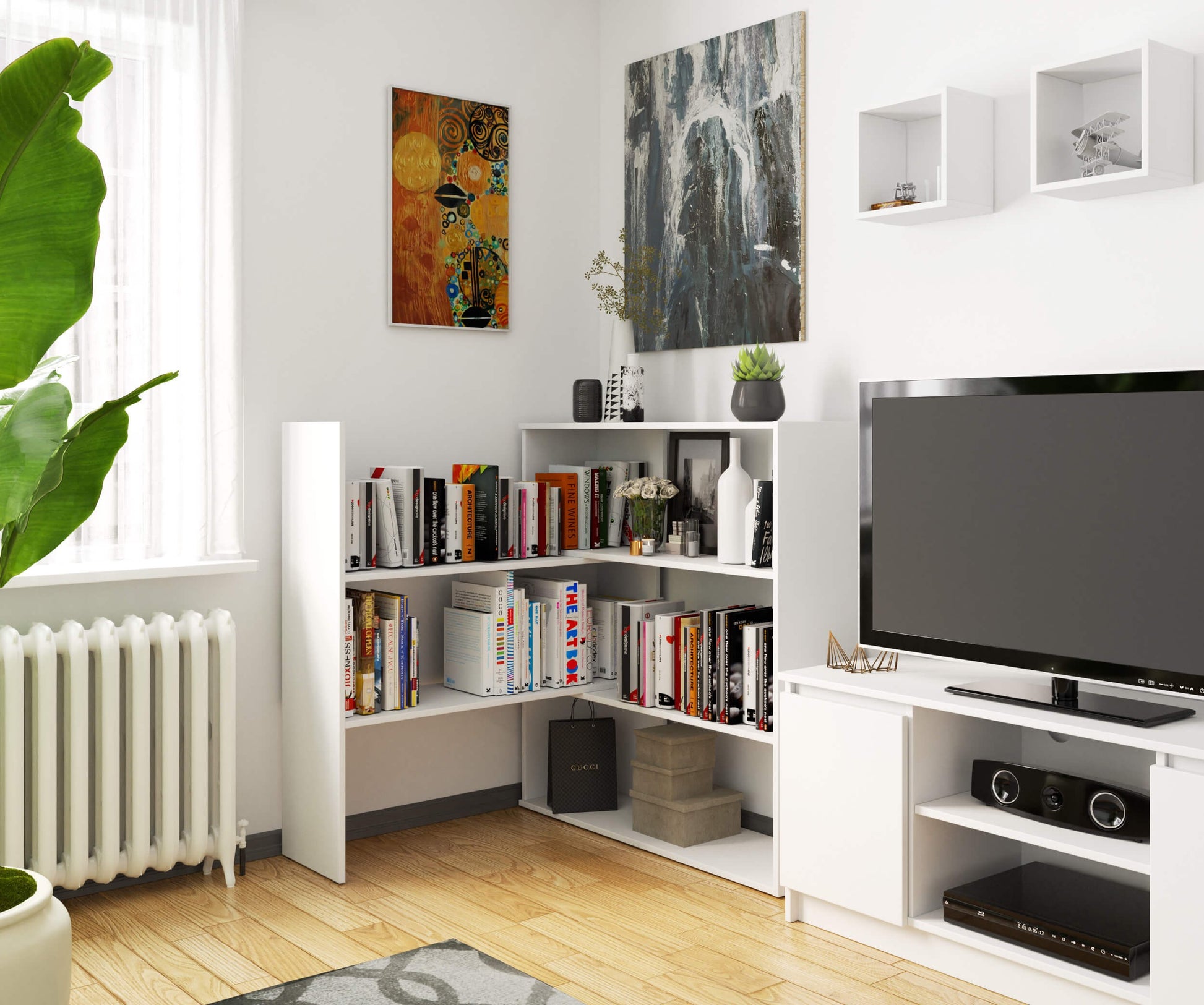 Unikatowy regał przestawny mini TWIST który można rozłożyć lub stworzyć z niego regał narożny. Dzięki swoim właściwością idealnie nada się do każdego rodzaju salonu, biura lub pokoju dziecięcego.