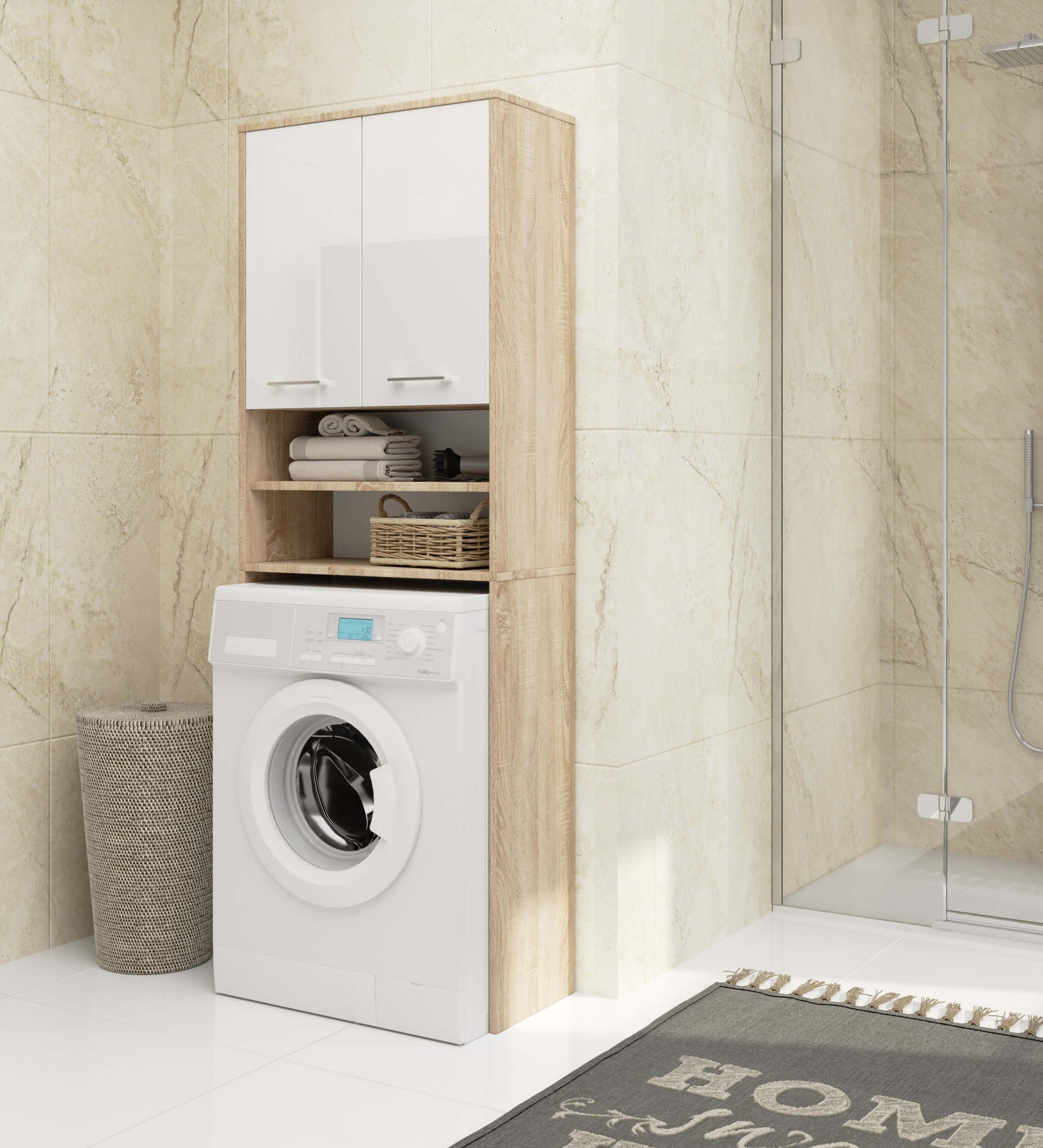 SŁUPEK REGAŁ ŁAZIENKOWY FIN NAD PRALKĘ DĄB SONOMA / BIAŁY POŁYSK