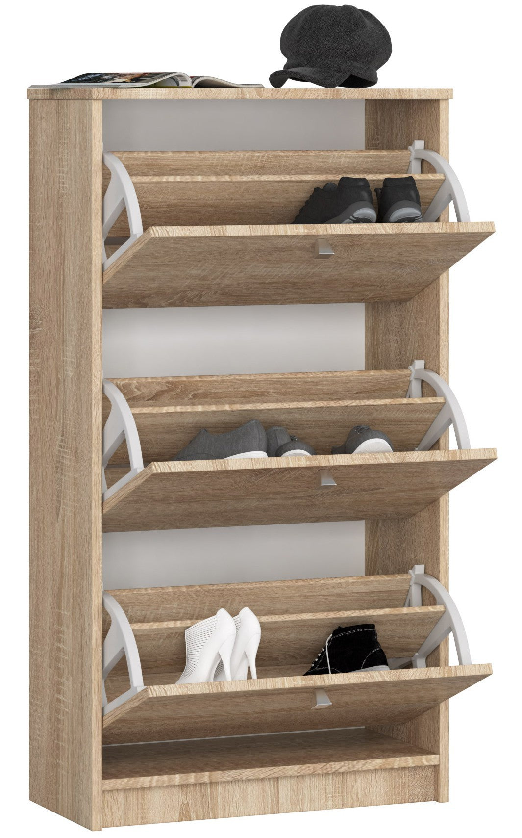 SZAFKA NA BUTY 3 UCHYLNE DRZWICZKI 60 cm DĄB SONOMA