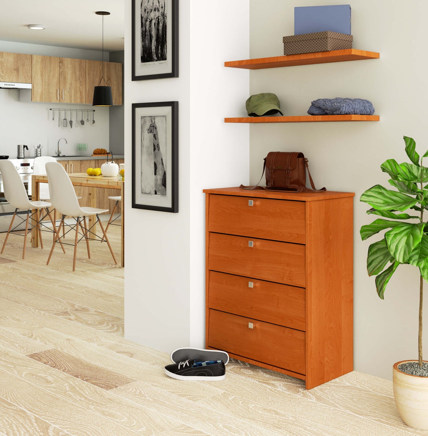 Szafka na buty RUBIN 4 uchylne drzwiczki 66 cm - olcha