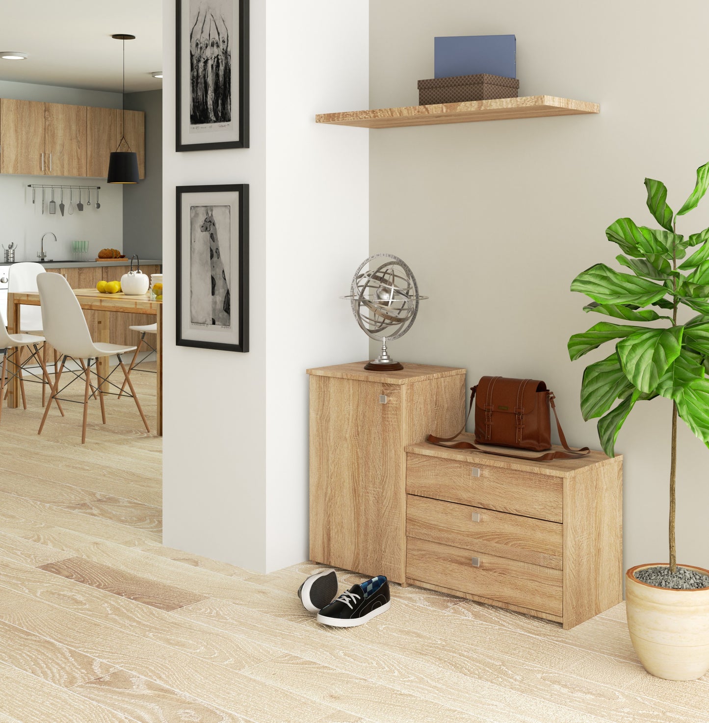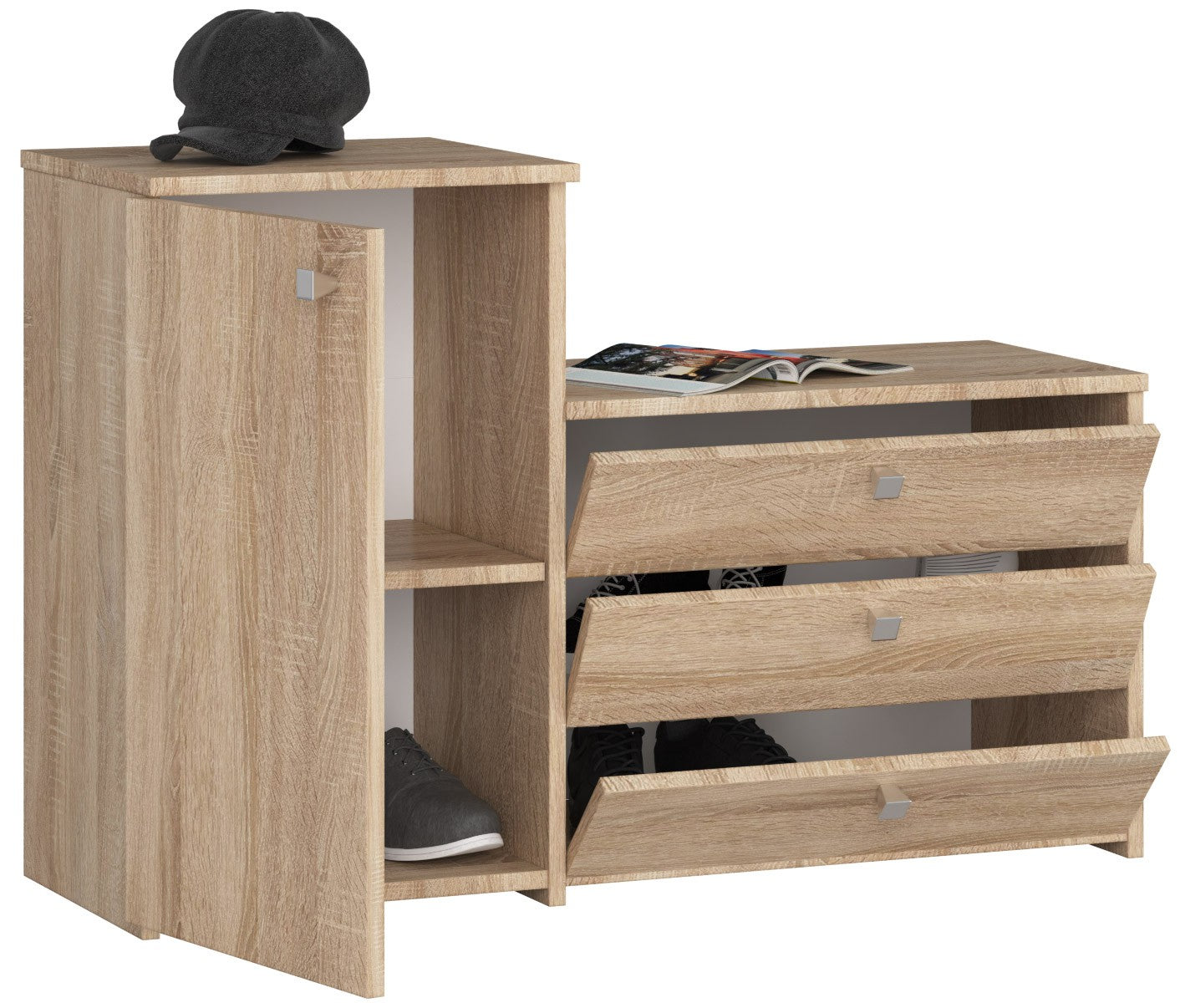 Szafka na buty S16 z komodą 3 uchylne drzwiczki - dąb sonoma