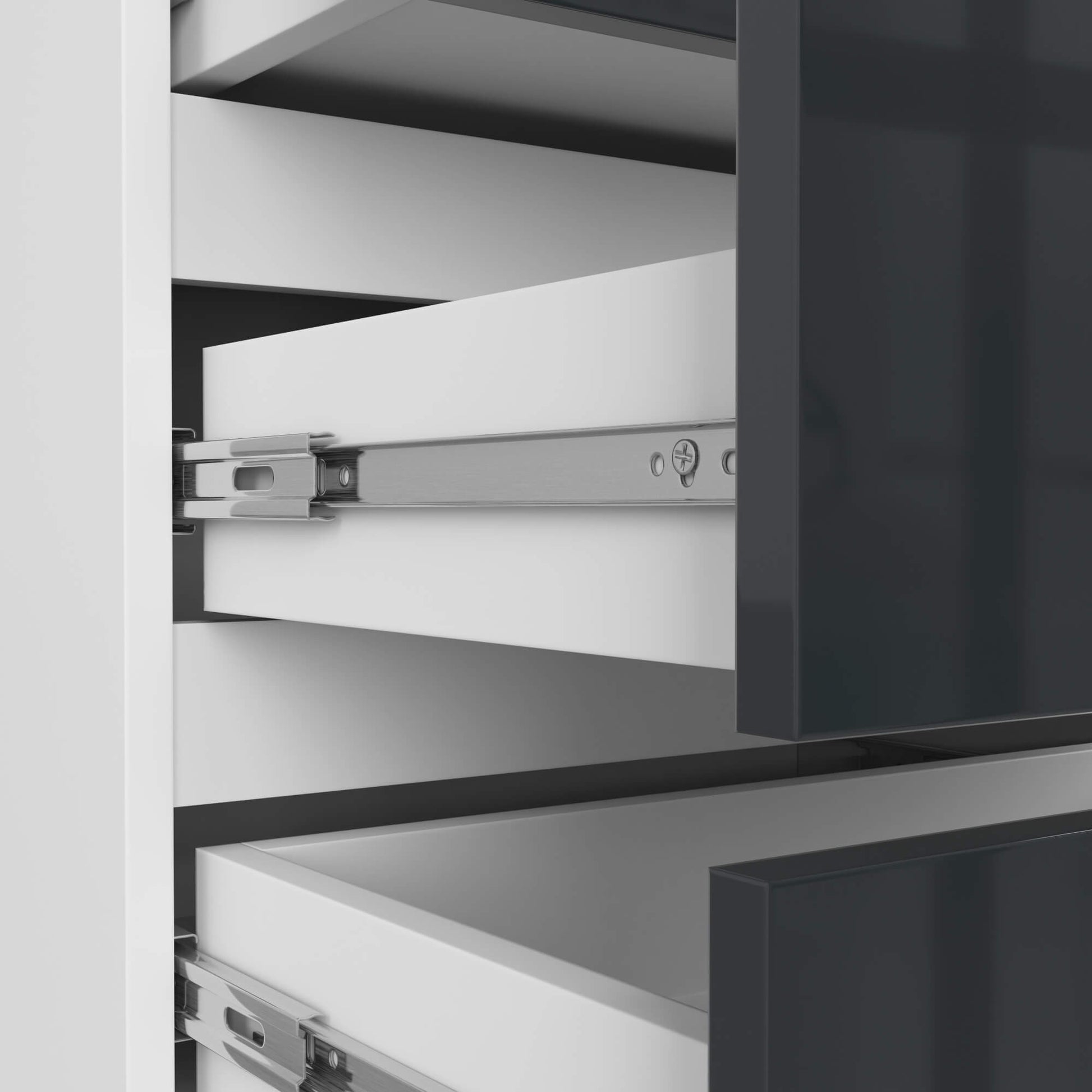 - Szuflady poruszają się na metalowych prowadnicach kulkowych