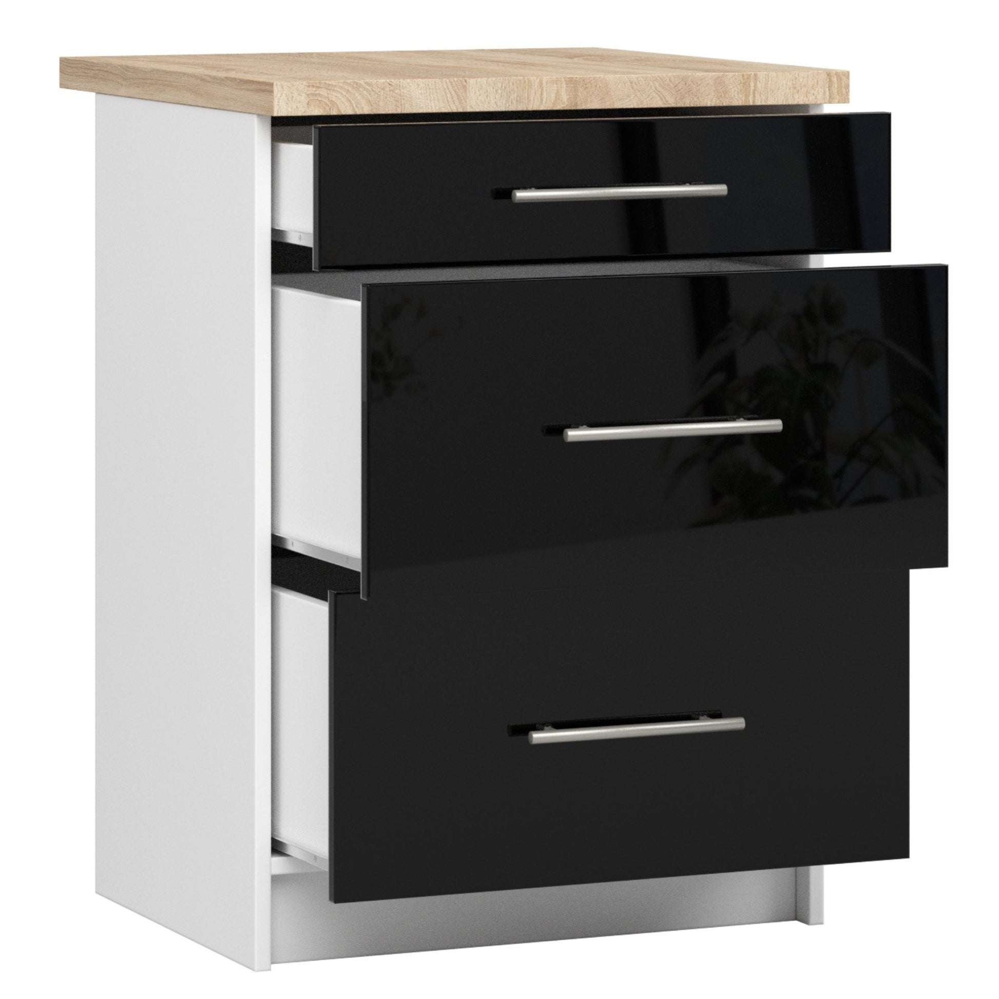 Szafka OLIWIA S60 3SZ + BLAT BIAŁA / CZARNY POŁYSK
