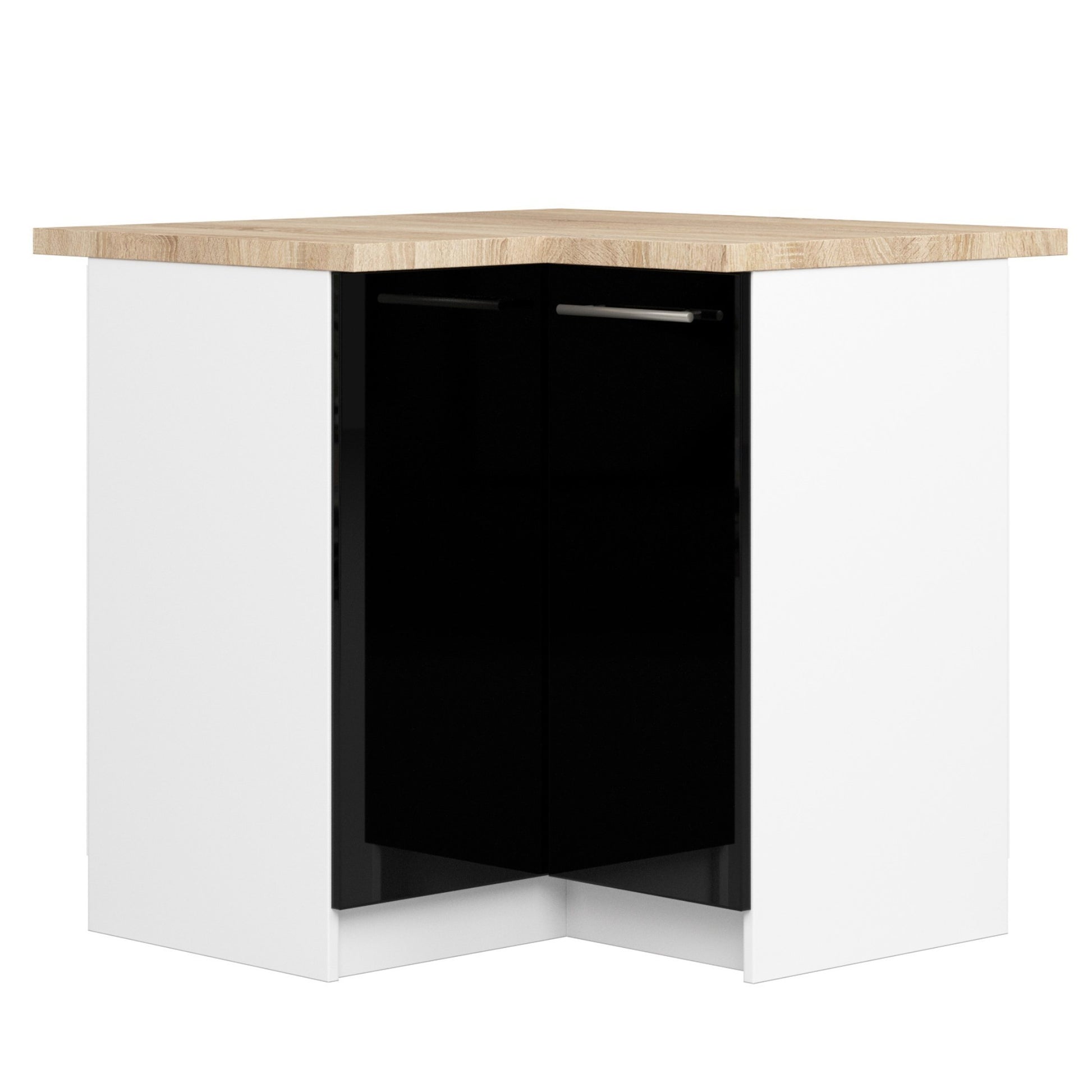 Biała narożna szafka kuchenna 90cm na 90cm z frontami czarny połysk. Szafka do zabudowy kuchennej modułowej.