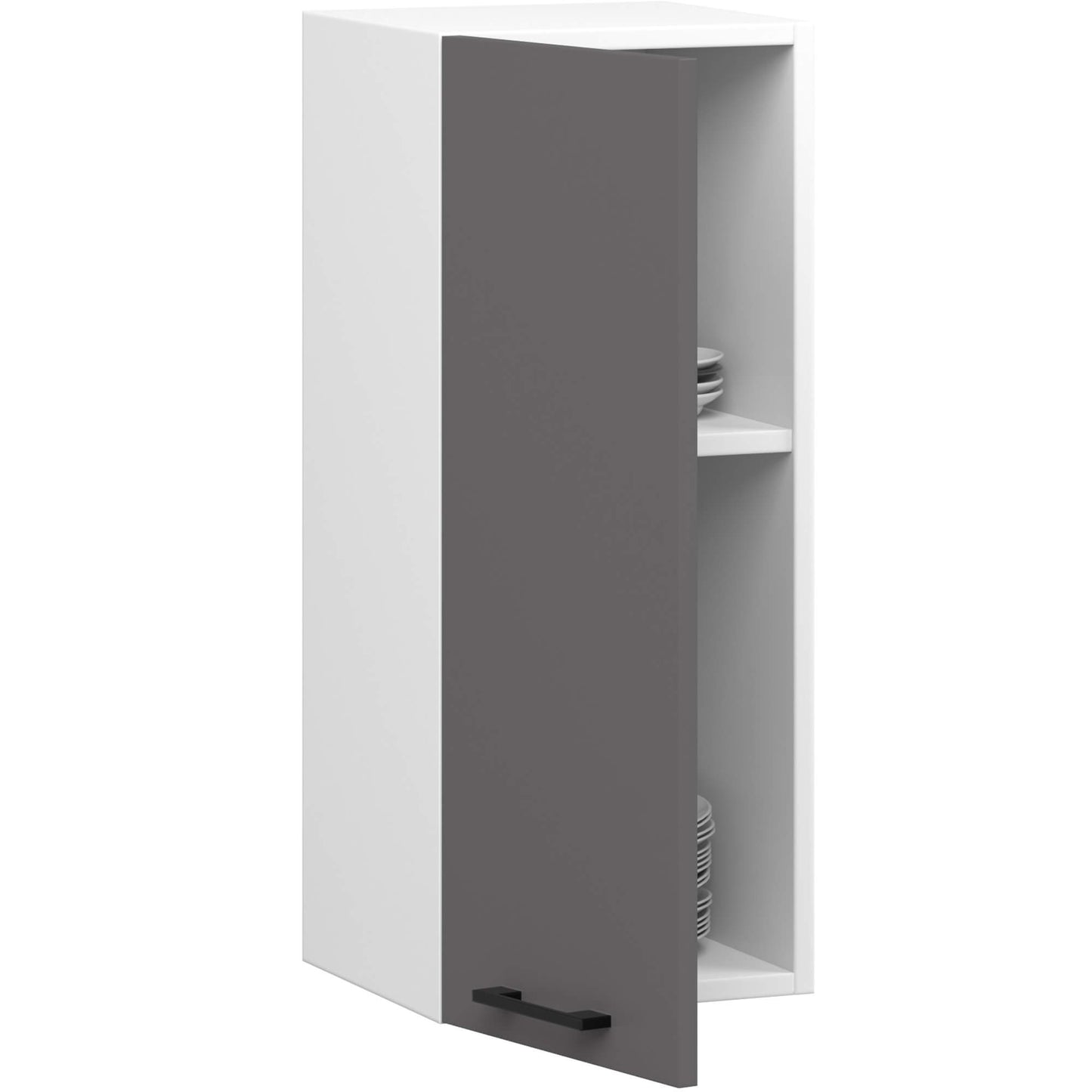 Szafka wisząca o szerokości 30 cm z zestawu mebli kuchennych Oliwia. Szafka z frontami matowymi do powieszenia w kuchni. Wnętrze szafki posiada 2 półki.