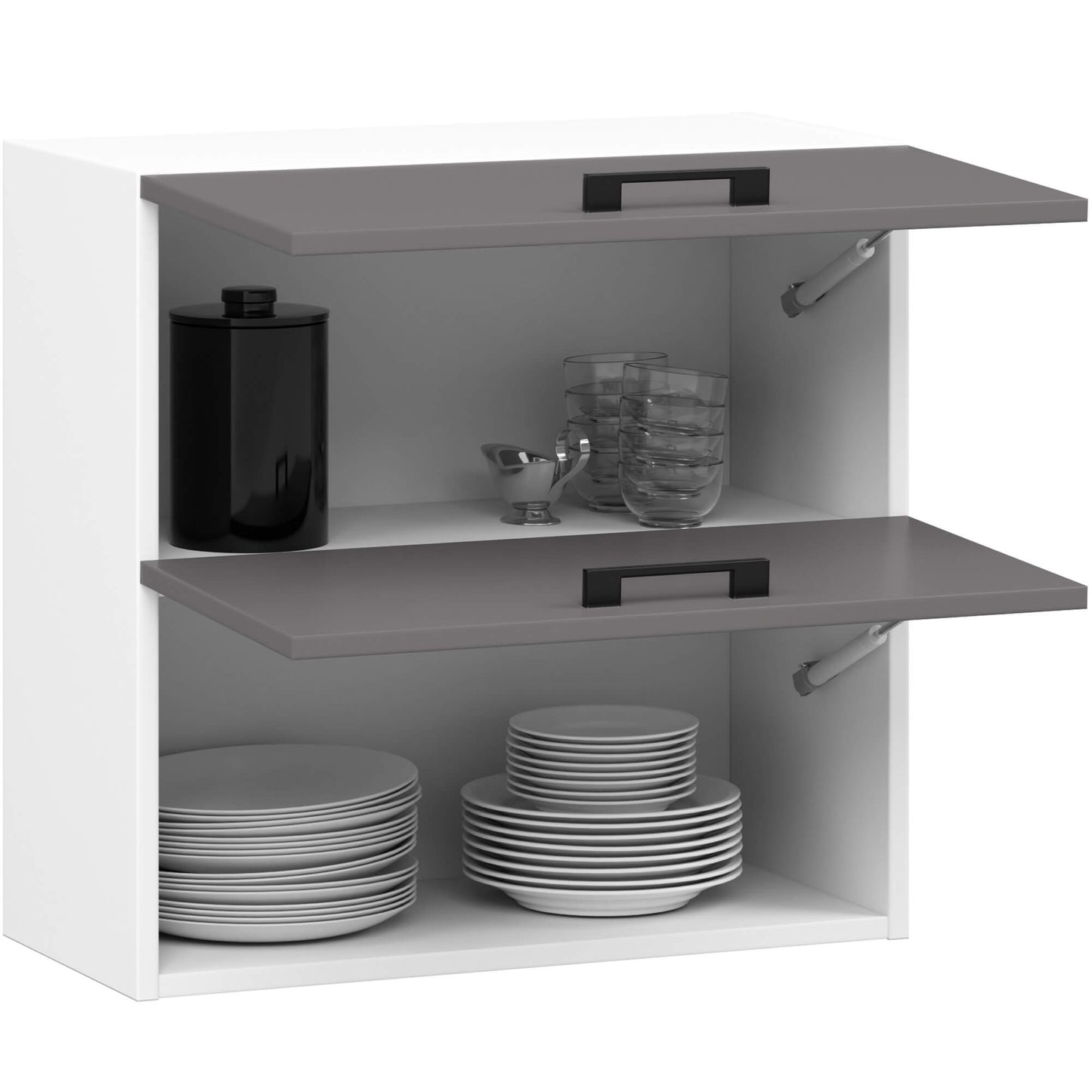 Biała podwójna szafka wisząca z szarymi frontami 60 cm z systemu Oliwia.