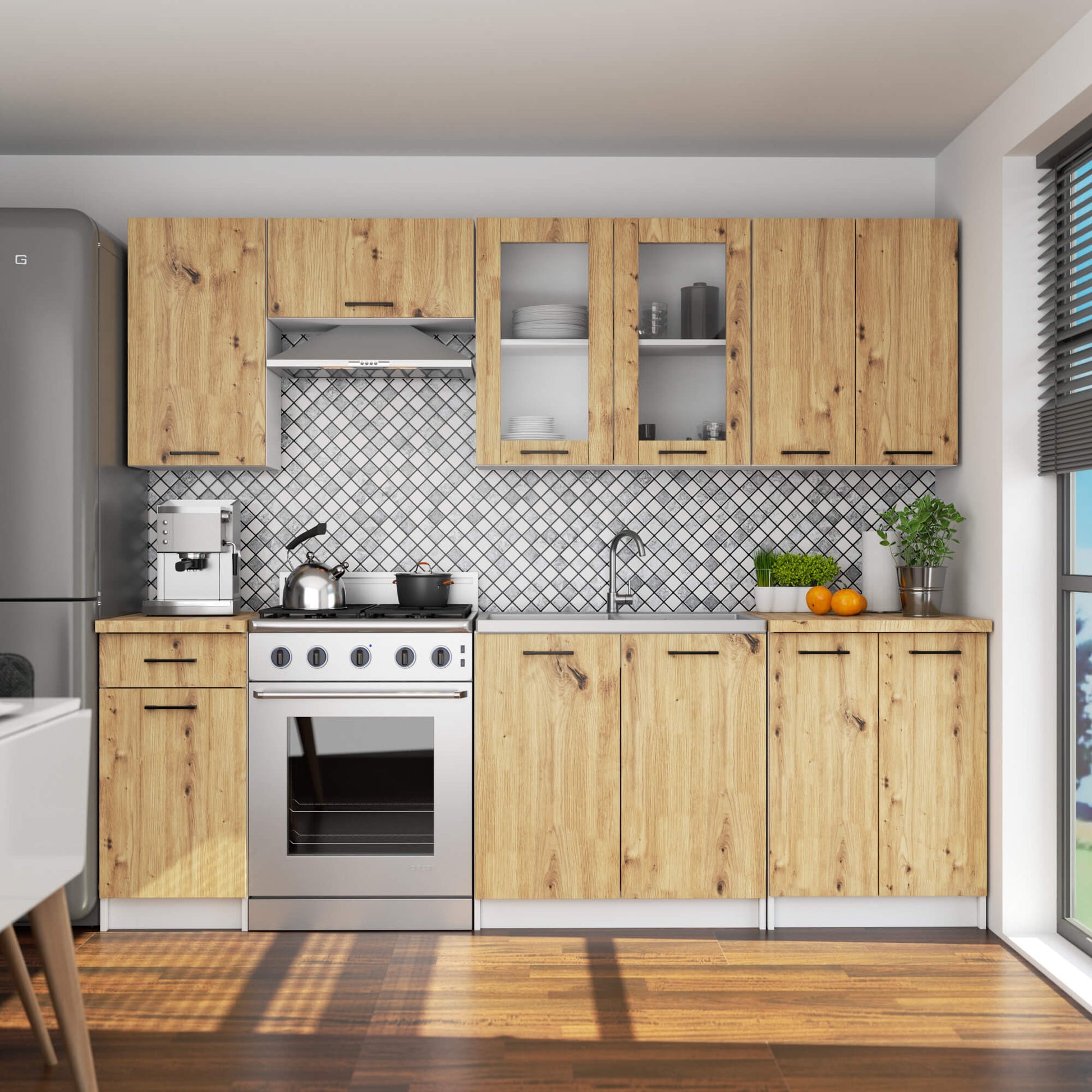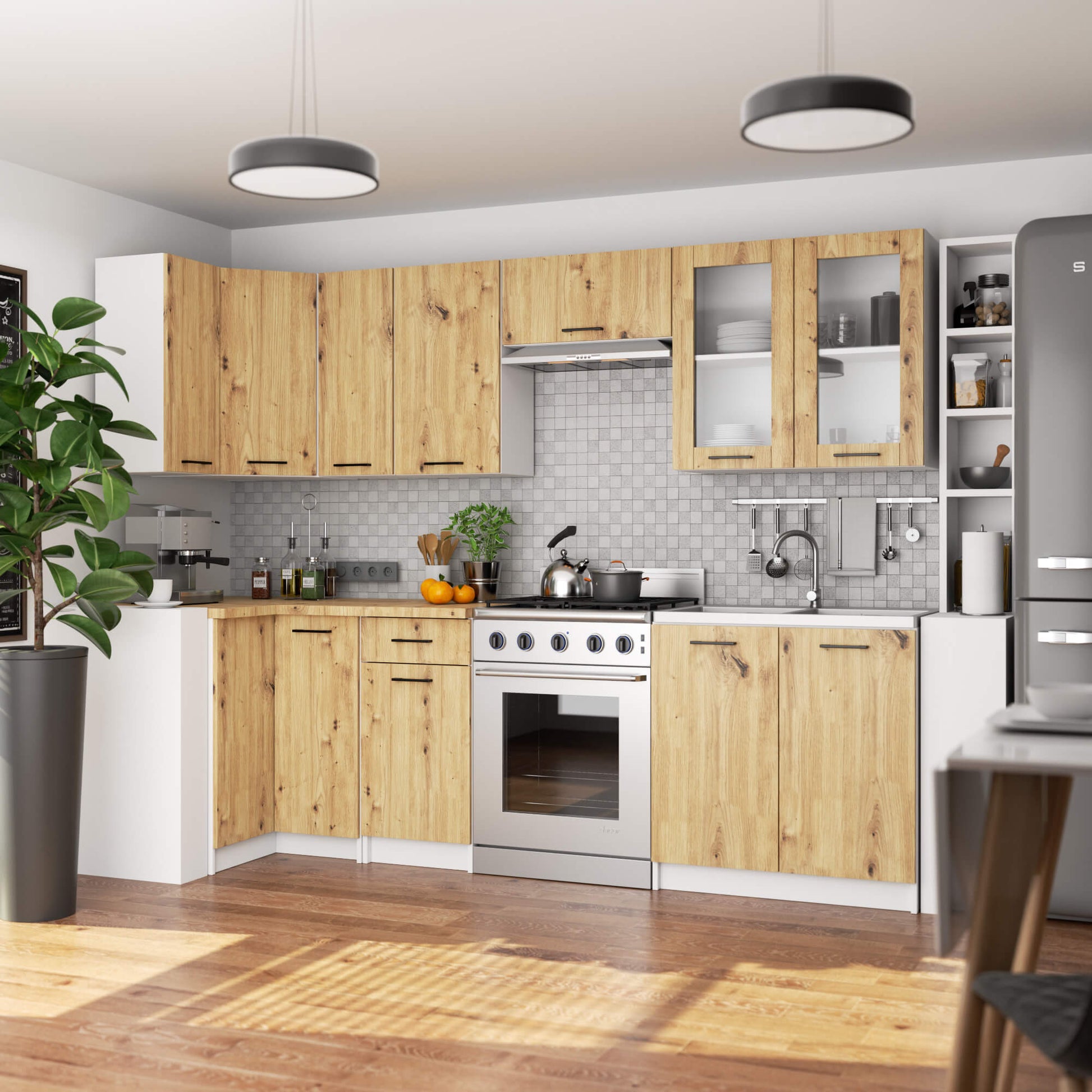 Szafka wisząca witryna z zestawu OLIWIA. Wykończenie frontu w kolorze Dąb Artisan.