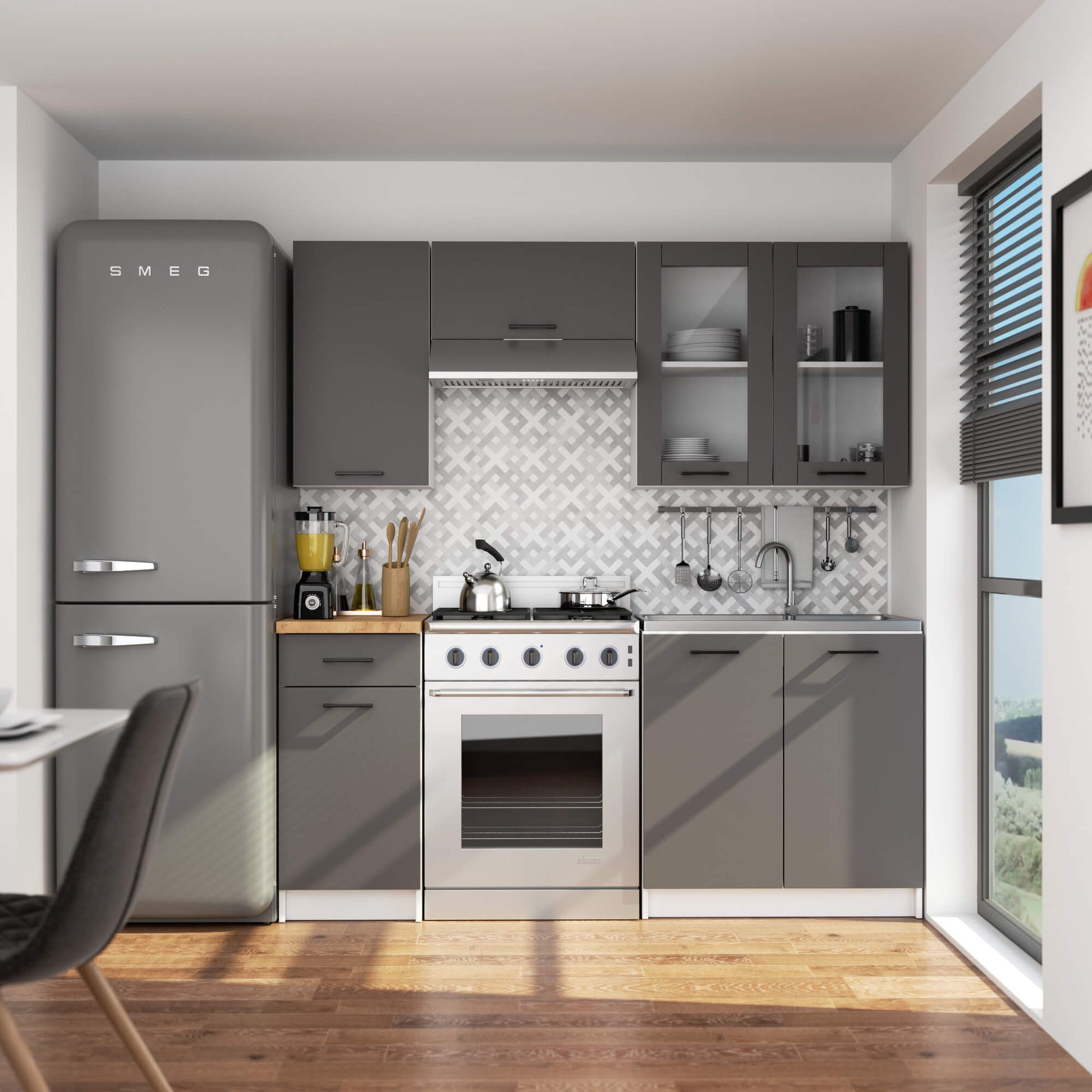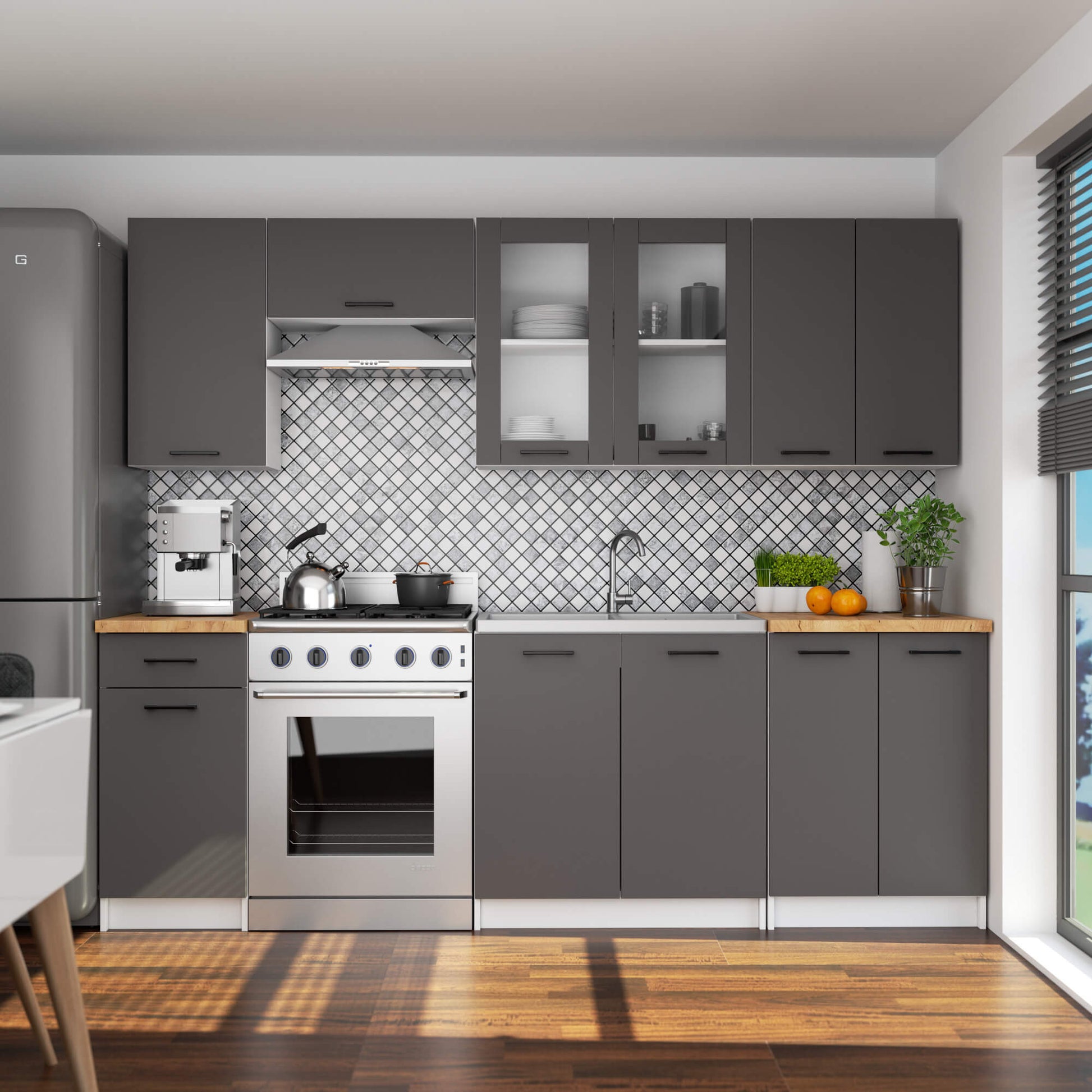 Szafka wisząca witryna z zestawu OLIWIA. Wykończenie frontu w kolorze Grafit Szary.