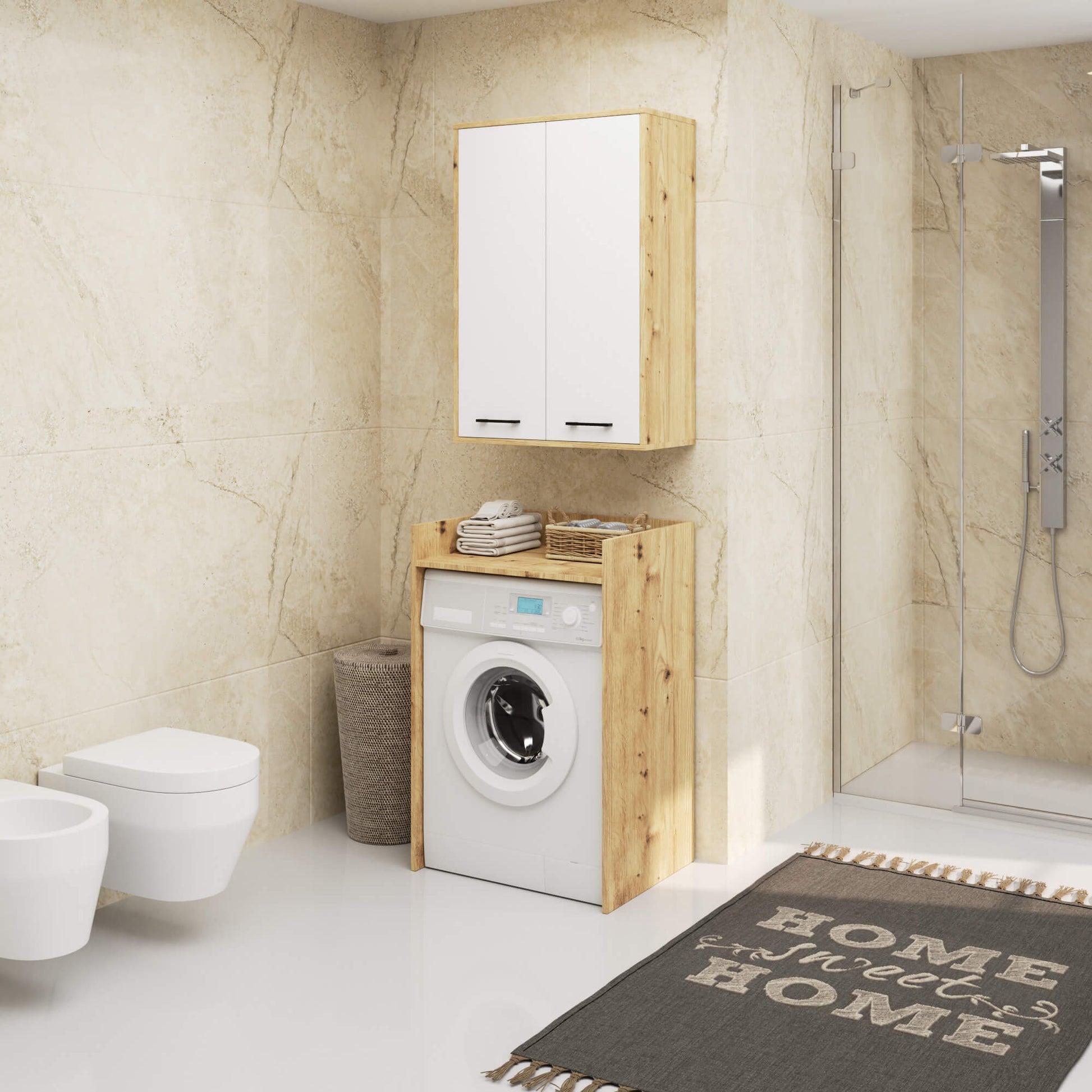 Pięknie i funkcjonalnie urządzona łazienka może być wizytówką każdego domu. Dlatego warto postawić na meble stylowe oraz pojemne, takie jak szafka wisząca. Szafka wisząca, która znajduje się w naszej ofercie, to produkt o nieprzeciętnej jakości i wyśmienicie wykonany. Jest to model dwudrzwiowy posiadający eleganckie uchwyty do otwierania. Szafka może być zawieszona nad pralką albo nad niższym słupkiem stojącym, z którym stworzy ciekawą kompozycję. Odpowiednia głębokość i szerokość tego mebla zapewnia, ze nie będzie ona przeszkadzała w korzystaniu z innych urządzeń łazienkowych. Wykonano ją z bardzo solidnego tworzywa jakim jest płyta laminowana. Gwarantuje to, że nic nie zepsuje jej nienagannego wyglądu. Dodatkowo obrzeża zostały pokryte materiałem ABS. Dlatego też nawet intensywna eksploatacja szafki nie wpłynie niekorzystnie na jej stan.