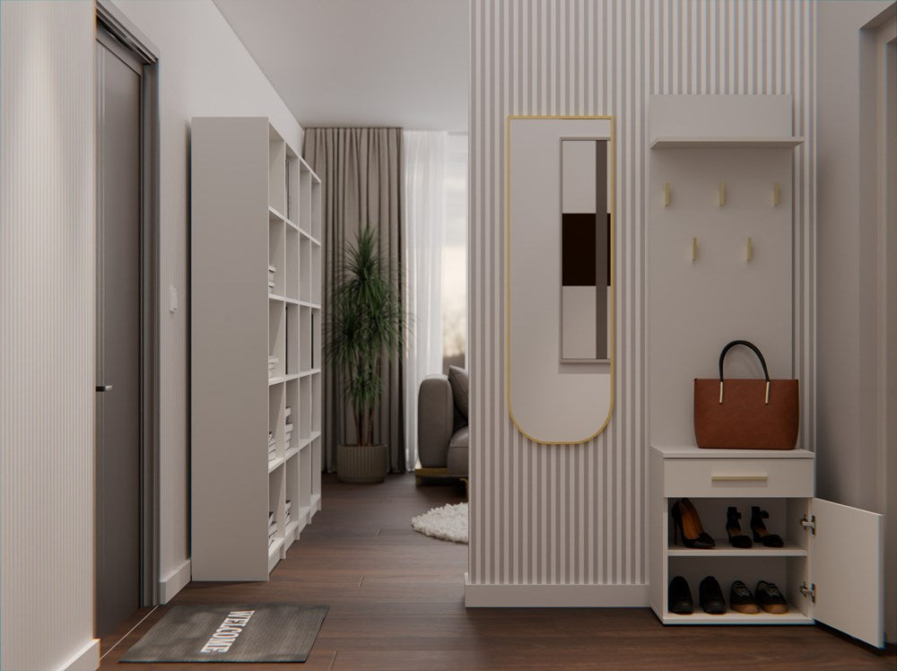 - Praktyczna szuflada oraz mniejsza szafka na buty