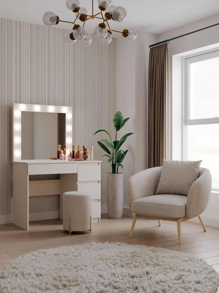 - Toaletka służy zarówno jako miejsce do przygotowania makijażu i innych zabiegów pielęgnacyjnych, jak i funkcjonalne biurko.