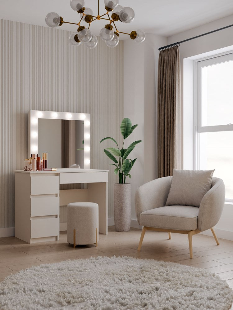 - Toaletka służy zarówno jako miejsce do przygotowania makijażu i innych zabiegów pielęgnacyjnych, jak i funkcjonalne biurko.